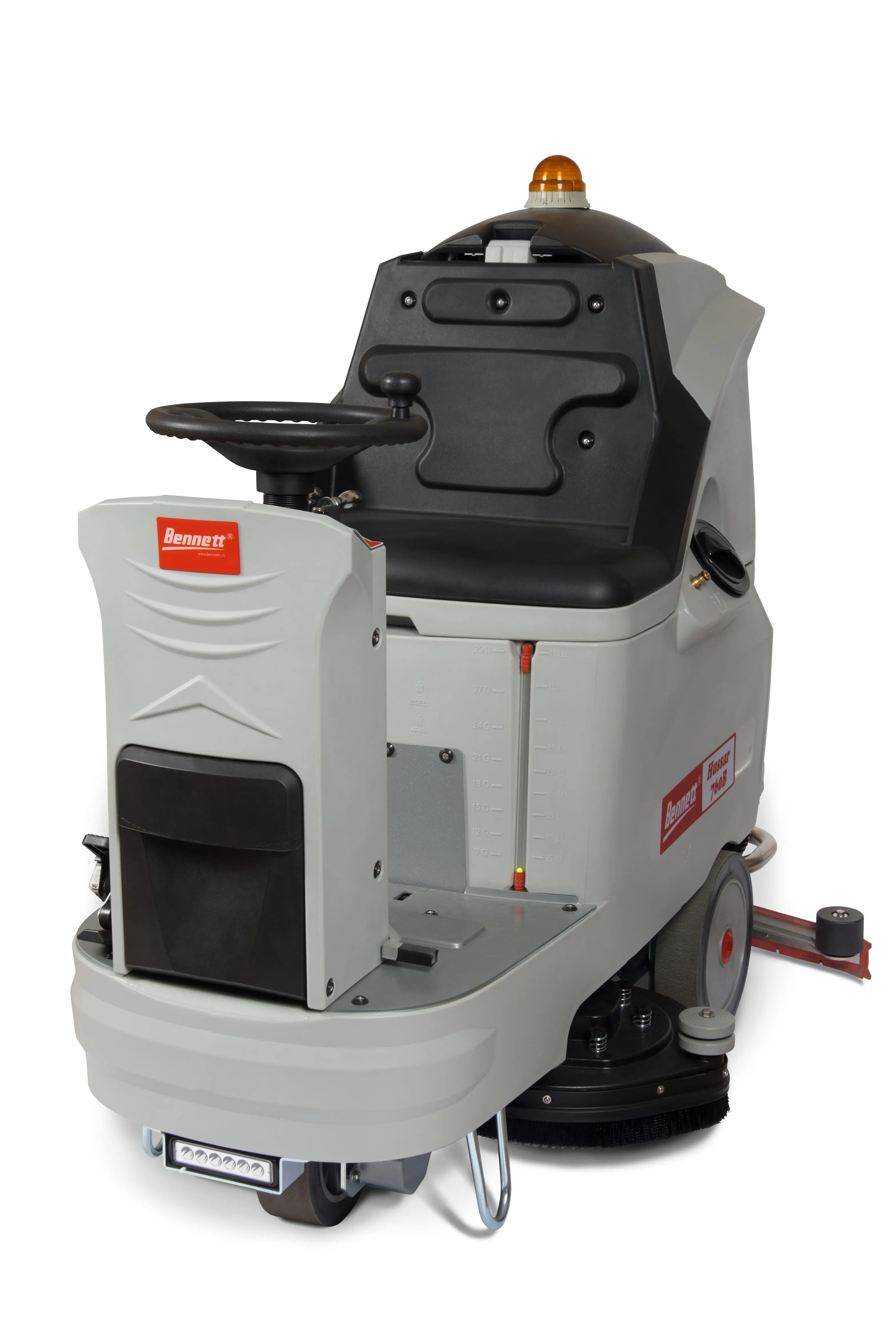 Ключевое преимущество техники Bennett — автономность и маневренность. Отсутствие проводов позволяет операторам быстро перемещаться между зонами, будь то узкие проходы в офисах или широкие коридоры торговых центров. В линейке представлены как компактные толкаемые модели вроде SMART S510B (1850 м²/ч), идеально подходящие для площадей до 1000 м², так и мощные райдеры.
