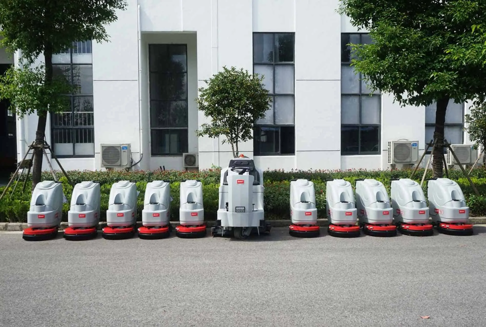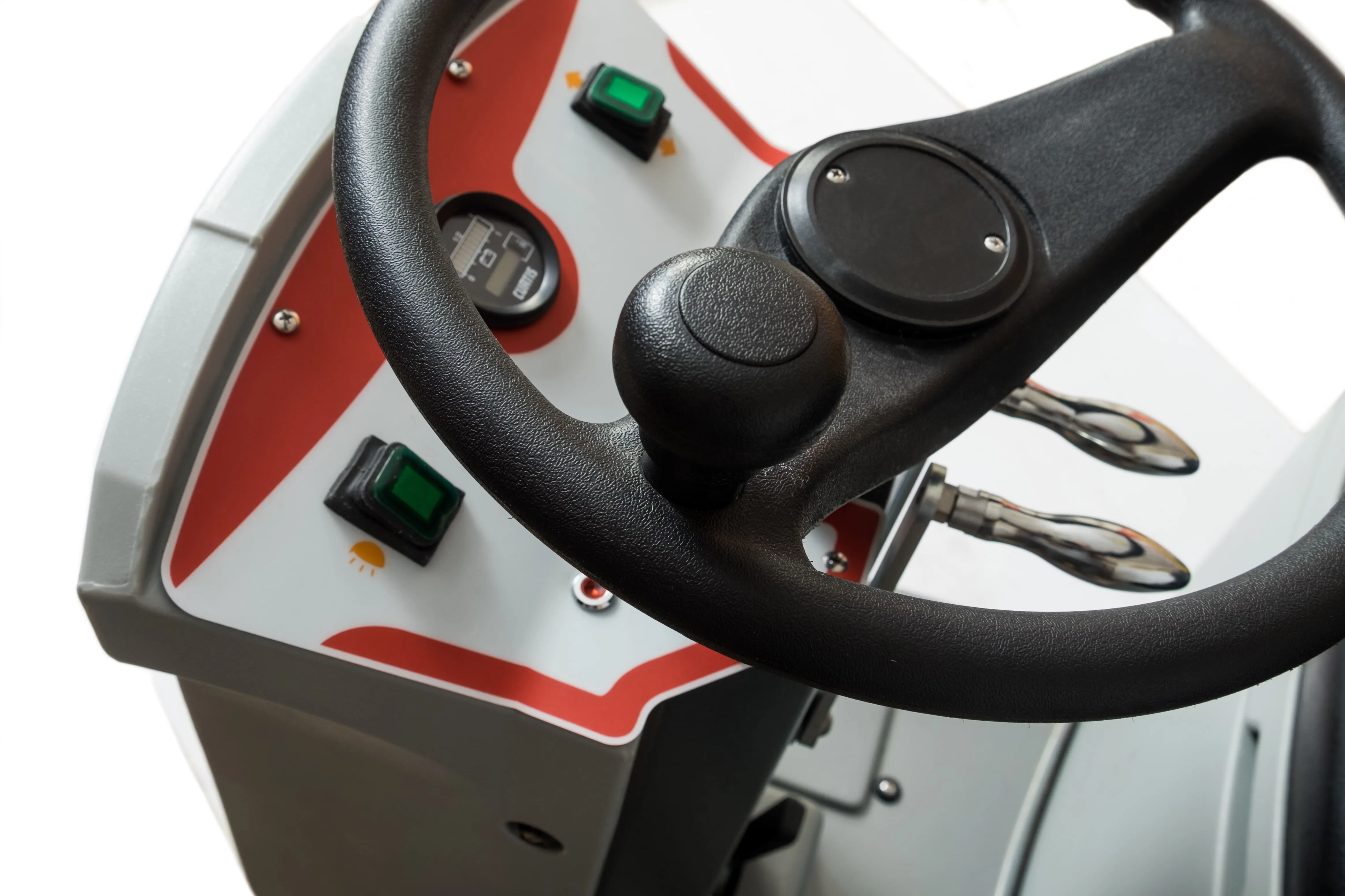 На промышленных объектах машины должны справляться с сильными, специфическими загрязнениями. Требуются райдеры с прочным стальным шасси, широкой рабочей зоной и высокой прижимной силой щетки.